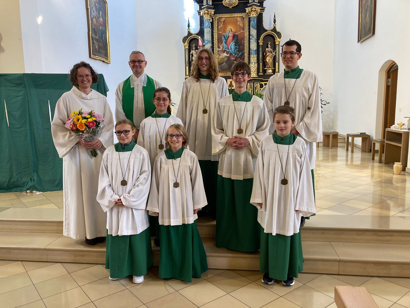 Trotz Ferienzeit kamen auch Vertreter/innen der Ministrantengemeinschaft beider Pfarreien um die neue Beauftragte für Kinder- und Jugendarbeit in den Pfarreien zu begrüßen.